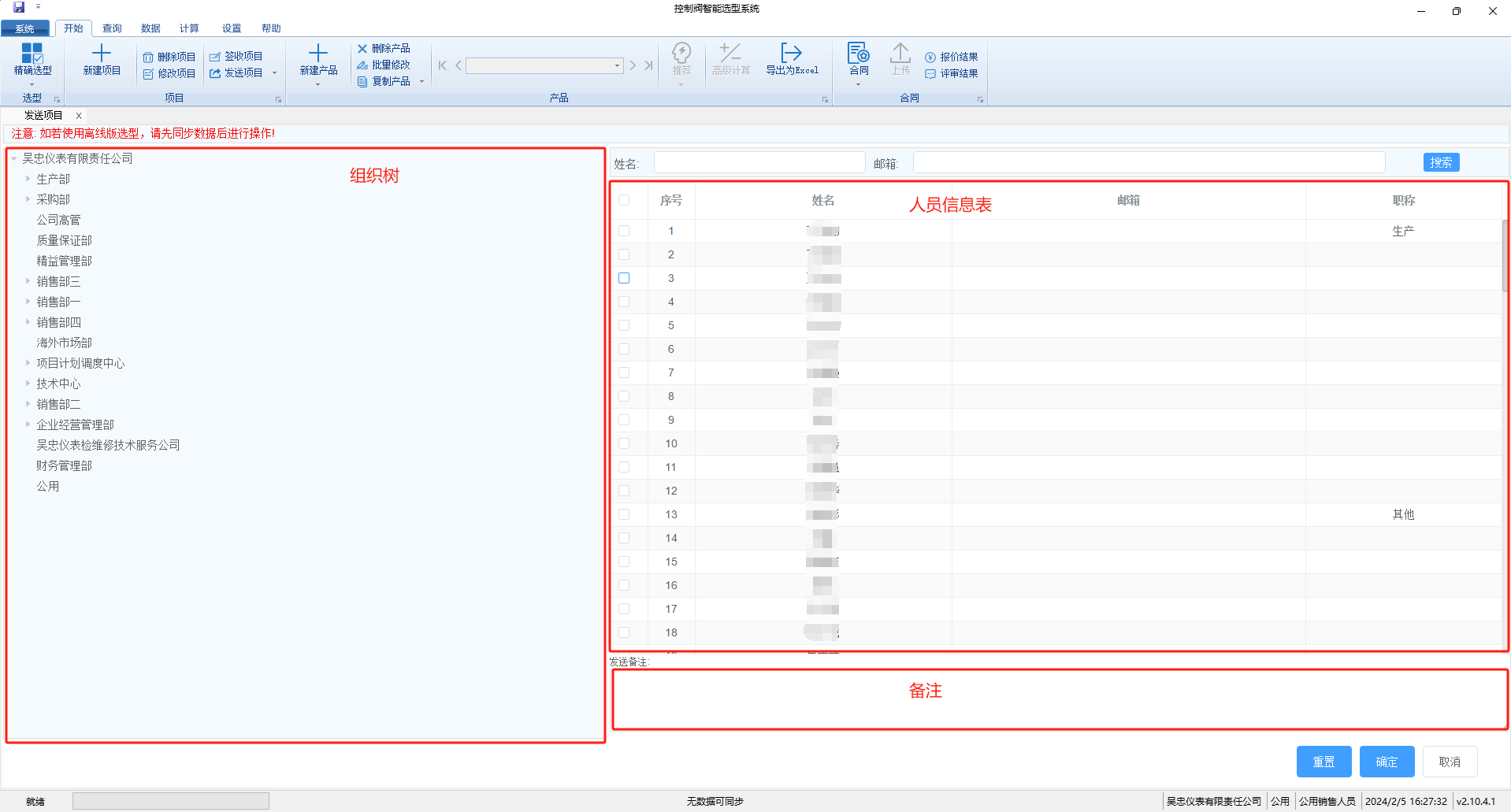 功能是,当前登录用户将自己的项目发送给其他用户(非选型报价室人员只能选择非选型报价室人员,