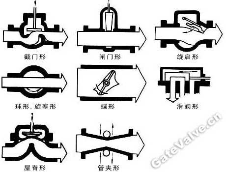 - 闸门形-关闭件沿着垂直于阀座的中心线移动。